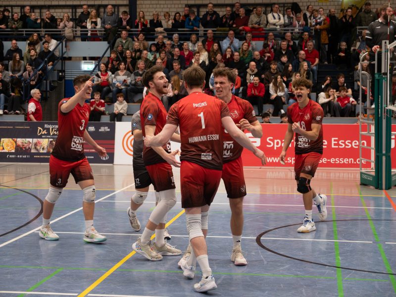 Bereits am fünftletzten Spieltag hat der VV Humann Essen seine bisher überragende Saison vorläufig gekrönt. Durch das eindeutige 3:0 (25:16, 26:24, 25:16) zuhause im Westderby gegen den Tabellenvierten TuB Bocholt ist in der Hauptrunde der zweiten Volleyball Bundesliga Nord mindestens Platz drei sicher.