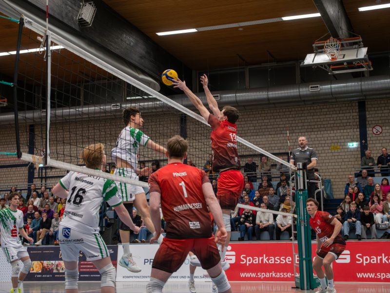 Deutlich verbessert präsentierte sich der VV Humann Essen beim 3:2 zuhause gegen die America Unlimited Volleys Aligse. Damit wahrt der Tabellendritte, der nun im Saisonverlauf alle Teams der zweiten Bundesliga Nord mindestens einmal besiegt hat, die (theoretische) Chance auf Platz eins oder zwei.